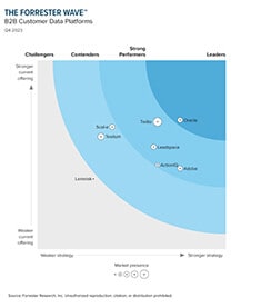 The Forrester Wave™: تقرير منصات بيانات عملاء الشركات هو تقييم مكون من 29 معيارًا لثمانية من كبار موفِّري منصات بيانات عملاء الشركات المستقلة استنادًا إلى عروضها واستراتيجياتها الحالية، وتصنيفها كرائدة في المجال، وأو ذات أداء قوي، أو منافسة. يوضِّح التقرير كيفية تمكّن موفِّري الخدمات هؤلاء من الارتقاء بأنفسهم ومساعدة متخصصي عمليات الإيرادات على تحديد الموفِّر المناسب لاحتياجاتهم.