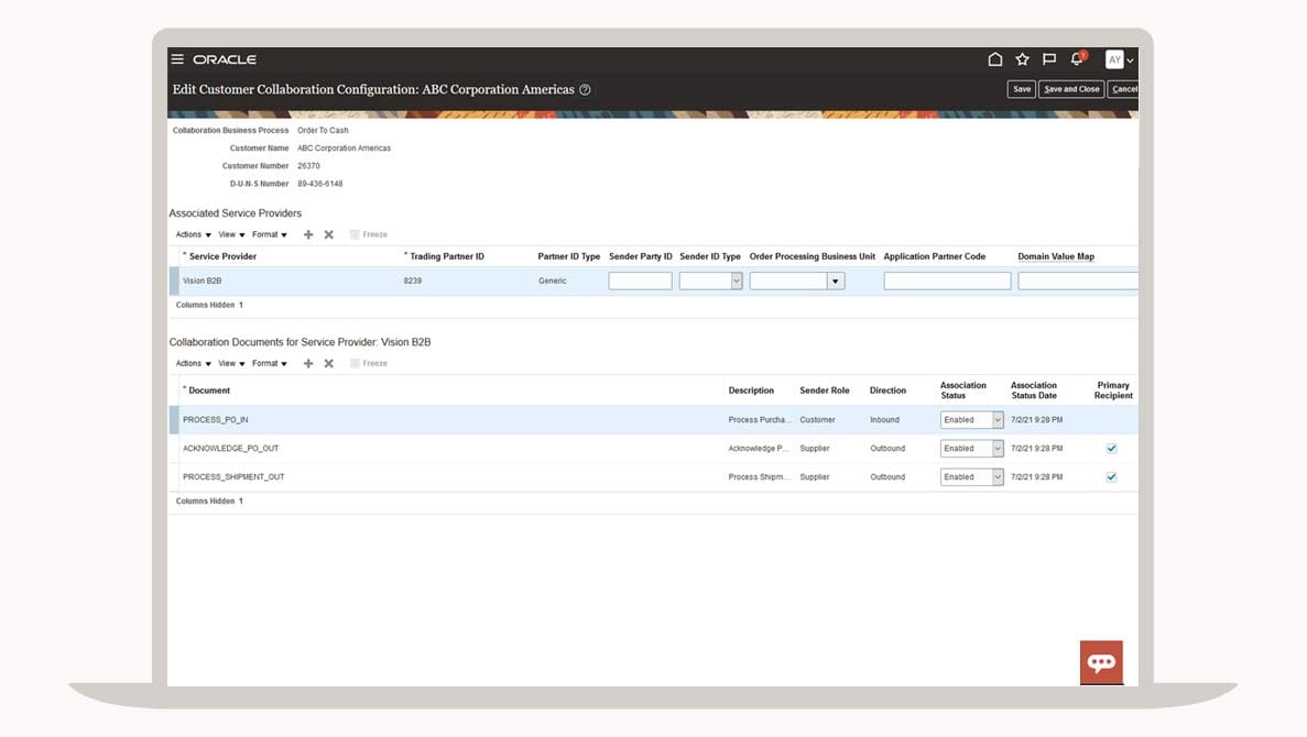 为了简化跨多个网络的数百个合作伙伴的登记流程,该应用还允许您将消息传送到 Oracle Integration Cloud、Oracle Business Network 以及多个经过认证的第三方 B2B 服务提供商。