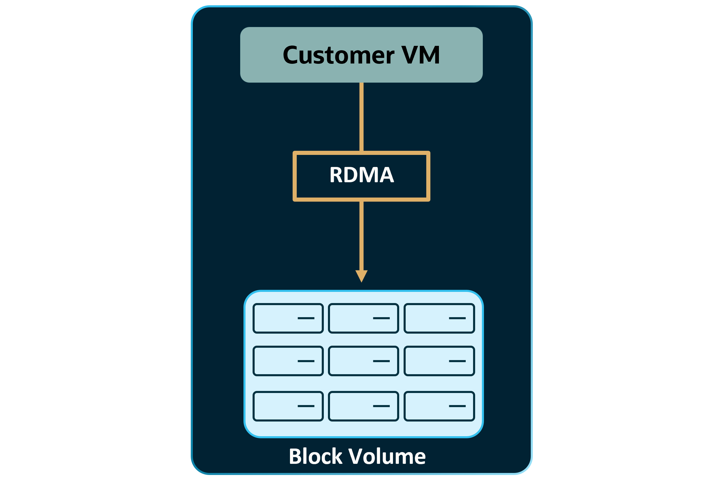 Exascale introduces unique RDMA-enabled Block Volumes (Exascale Volumes) to Exadata. Exascale Volumes are used by Virtual Machines (VMs) in place of using local storage in the database servers. Moving the VM volumes to shared, high-performance storage creates new opportunities for performance, scale, and functionality never before seen in Exadata.