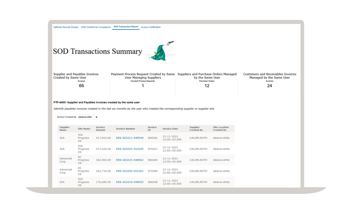 Confidently generate SoD reports to address audit and compliance (ICFR/SOX) requirements.
