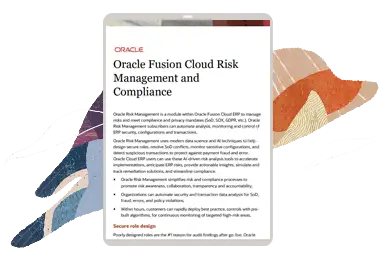 Oracle Cloud Risk Management has the same user interface, platform, upgrade cadence and security structure as Oracle Fusion Cloud ERP.