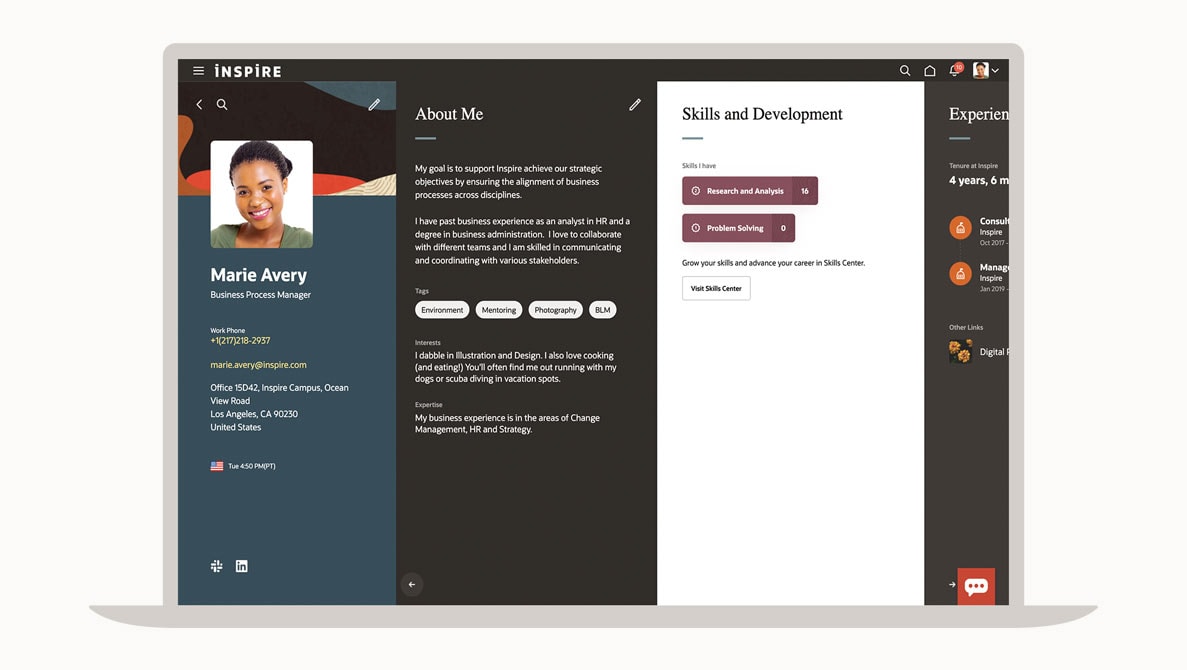 Allow workers to promote their personal brand by highlighting their skills, accomplishments, and career experience.