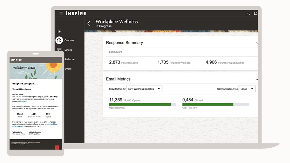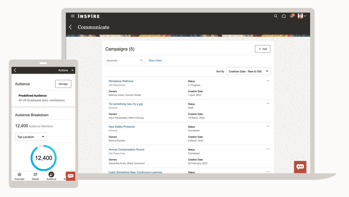 Send targeted communications and events based on employee attributes managed in Oracle Cloud HCM.