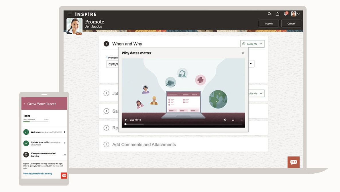 Deliver an employee growth and business leader upskilling solution that connects all talent information across a comprehensive HCM suite.