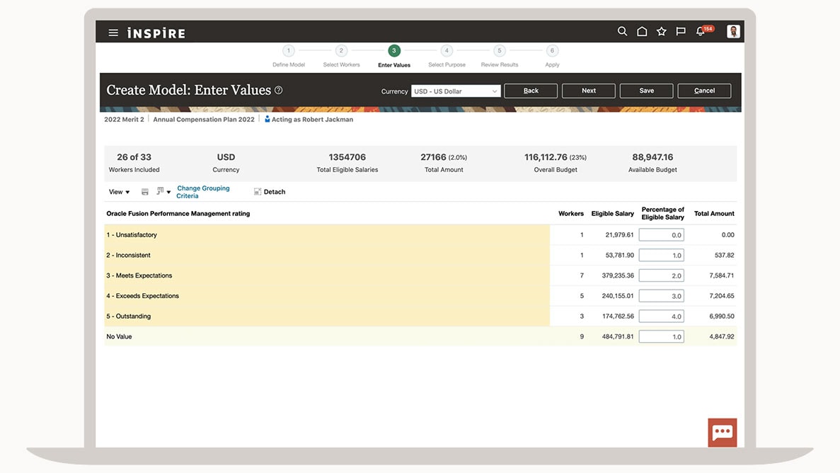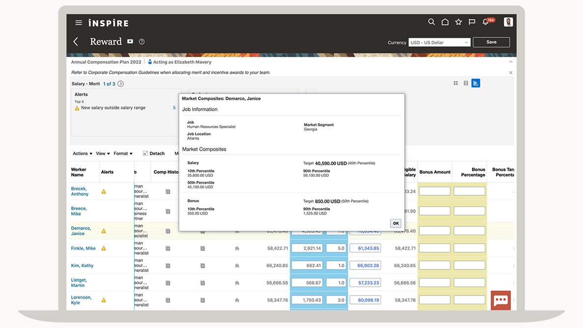 Make decisions about compensation plans using connected, relevant employee data from Oracle Cloud HCM.
