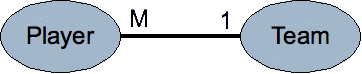 Teams have players. Although individual players belong to only one team, a team consists of multiple players. The relationship between Team and Player classes is one to many. One team has many players. Another similar relationship type is the many to one relationship. The many to one relationship is often the reverse perspective of a one to many relationship. You could, for example, just as easily say that Player and Team classes have a many to one relationship if you consider the relationship from a player's perspective.