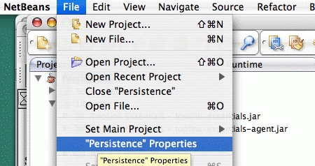 NetBeans 5.5 and later versions already have an installed version of the reference implementation, which is called Toplink Essentials. If you want updated versions of this library, however, you can use these instructions to add the library to your environment. The simplest way to accomplish both goals is to use an integrated development environment. NetBeans or Eclipse are both examples of popular IDEs that will help you include the provider implementation jar files in your compiler and JRE classpaths. The following examples use the NetBeans IDE, but you will use similar steps regardless of your IDE choice.
