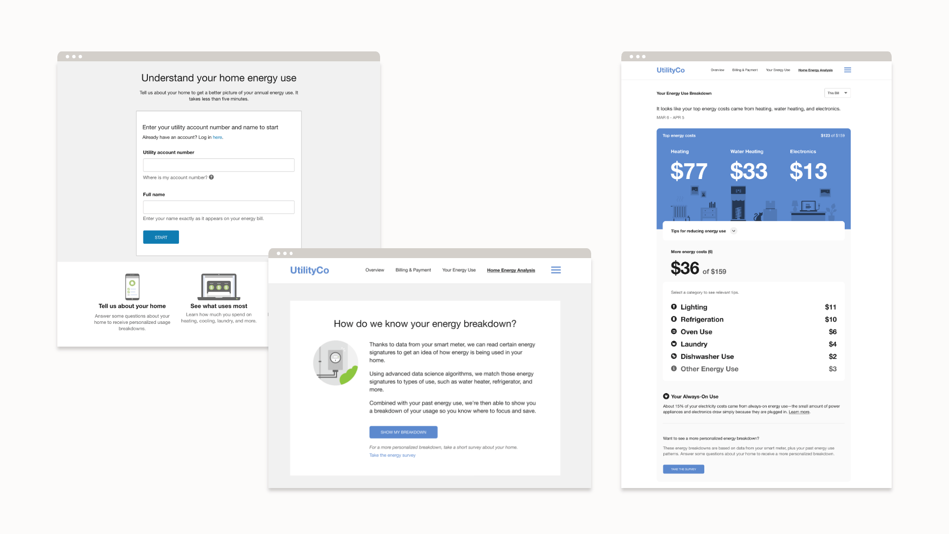 The online home energy audit is an easy and intuitive survey to capture additional information about a customer’s home. Energy usage data and insights captured from the survey are used to show customers a personalized view of how they’ve been using energy in their home. The audit’s intuitiveness and simplicity generate high customer completion rates.