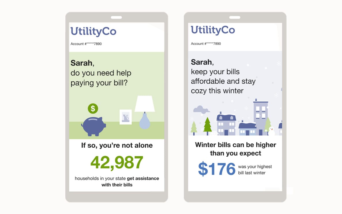 Deliver personalized communications designed to inspire customers to take action and seek recommended energy assistance programs through the Savings Hub.